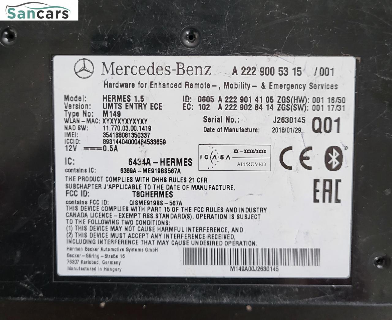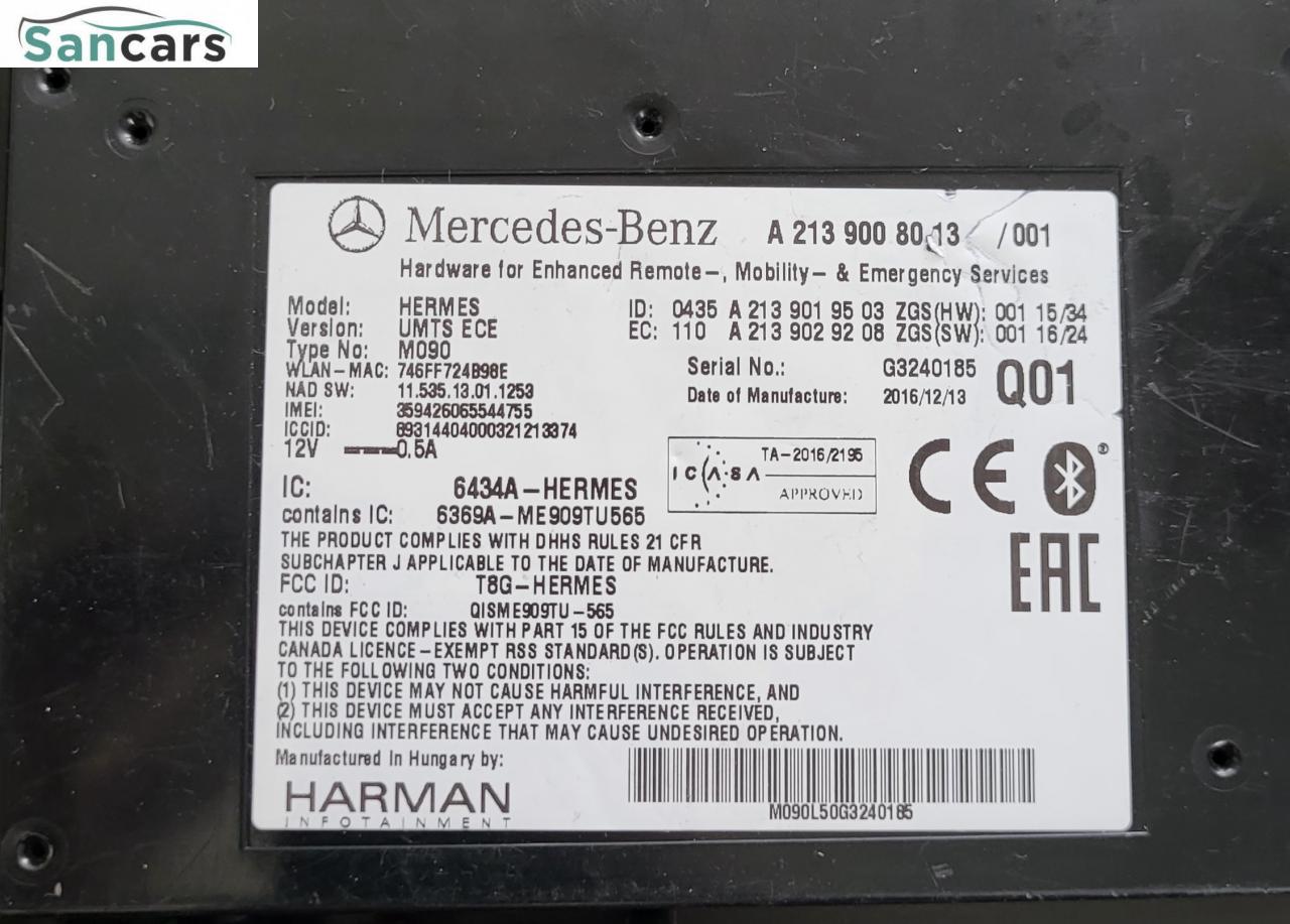 Блок аварийного вызова Mercedes E-Class W213 E220d. Оригинал. Отличное состояние - без дефектов. Гарантия на установку (14 дней). Возможна доставка транспортными компаниями. Подробности по телефону. Оригинальный номер: A2139008013/А2139008013/A2139003617/A2229005315. В наличии большой выбор б/у запчастей на Мерседес. Авторазборка Mercedes в Москве - Sancars.